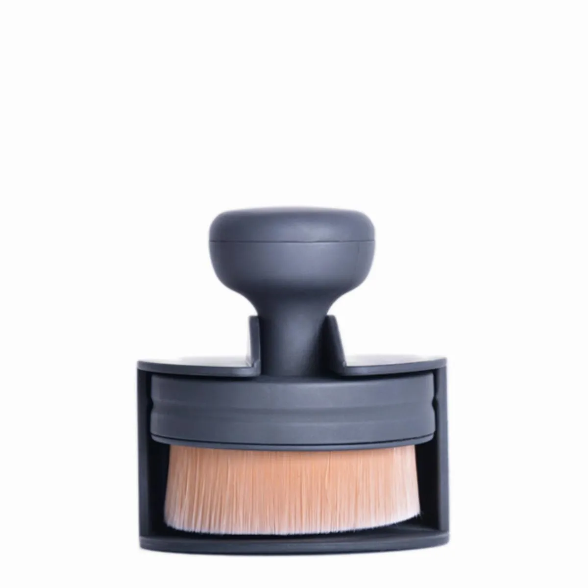 - Corte redondeado y compacto: La forma del cabezal permite aplicar la base en zonas amplias y a la vez trabajar áreas más pequeñas, como la zona de la nariz y alrededor de los ojos, con precisión.