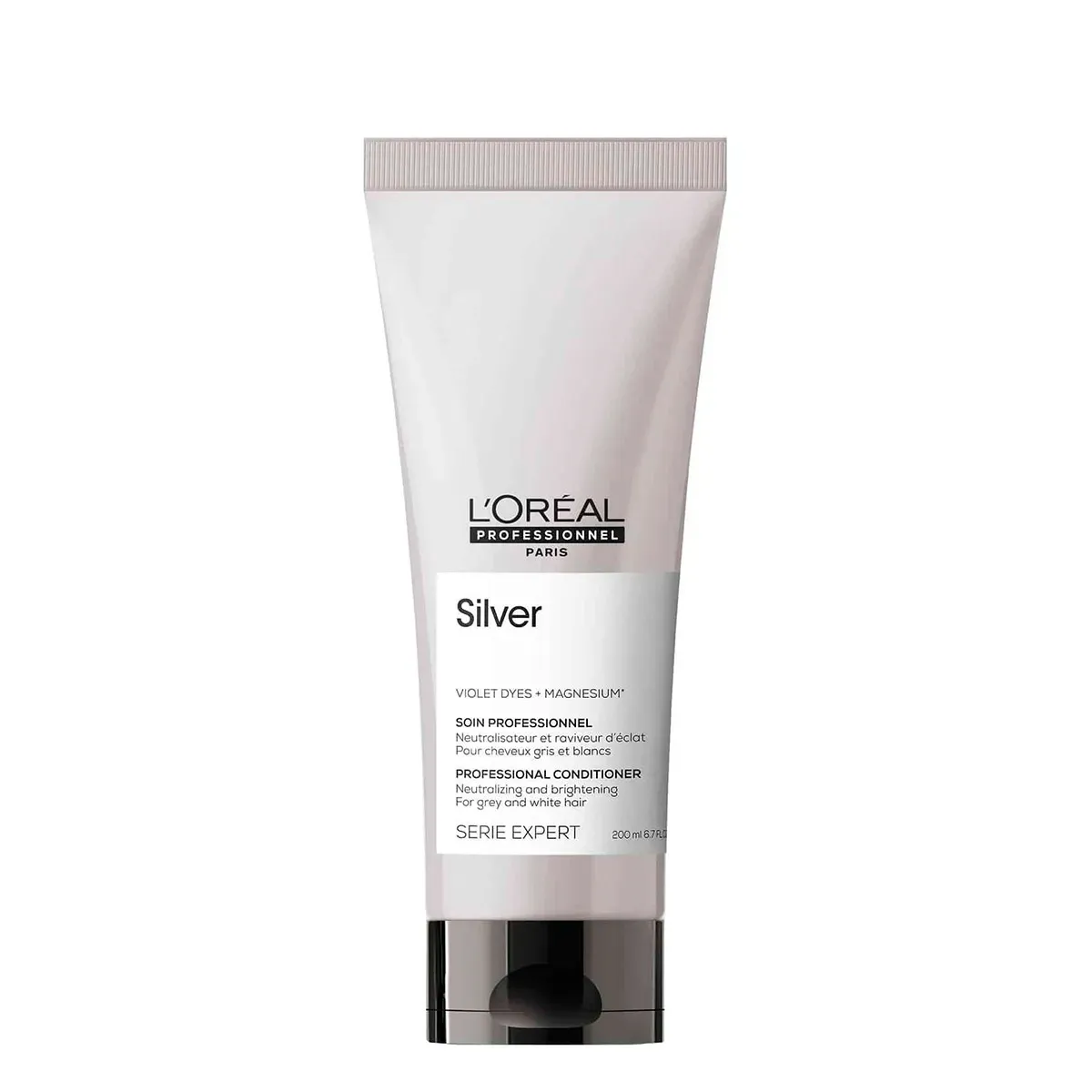 Loreal Expert Silver Acondicionador es un tratamiento capilar diseñado por Loreal Profesional Silver, específicamente para cabellos grises y blancos, así como para rubios claros o platino. Su fórmula, enriquecida con pigmentos violetas y aminoácidos, suaviza la estructura capilar, elimina los reflejos indeseados y resalta el brillo natural, dejando el cabello manejable, sedoso y con una luminosidad notable.