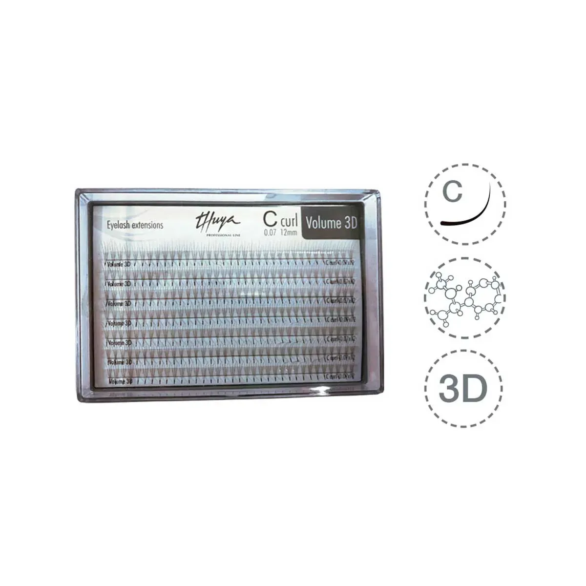 Con Extensiones de Pestañas 3D Thuya 0.07 C-Curl, garantizas resultados de alta calidad, clientas satisfechas y una aplicación segura y eficiente en tu salón.